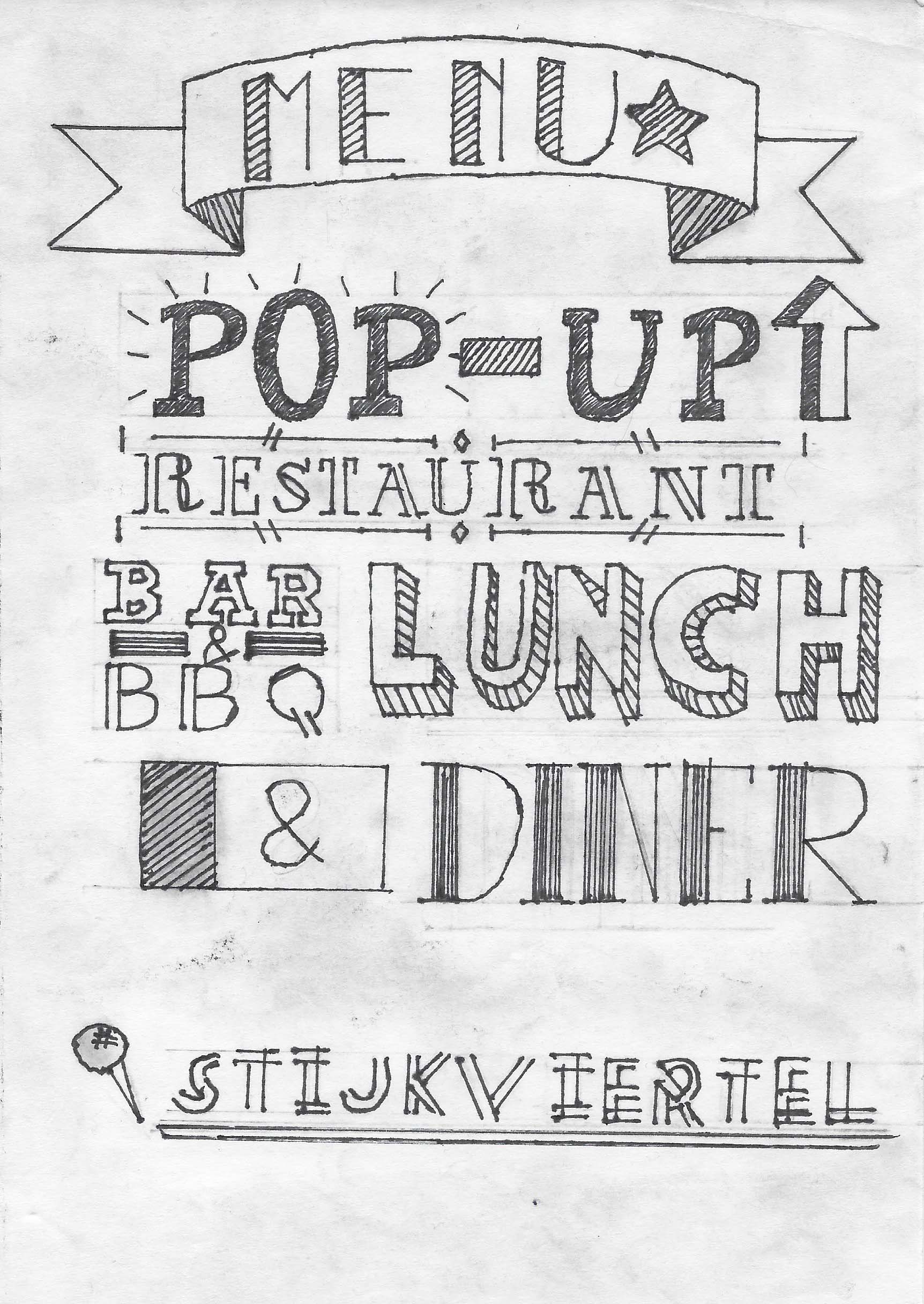 Menukaart handlettering voor Bar & BBQ. Hierbij ben ik begonnen met een schets, om die vervolgens over te trekken met een pen.