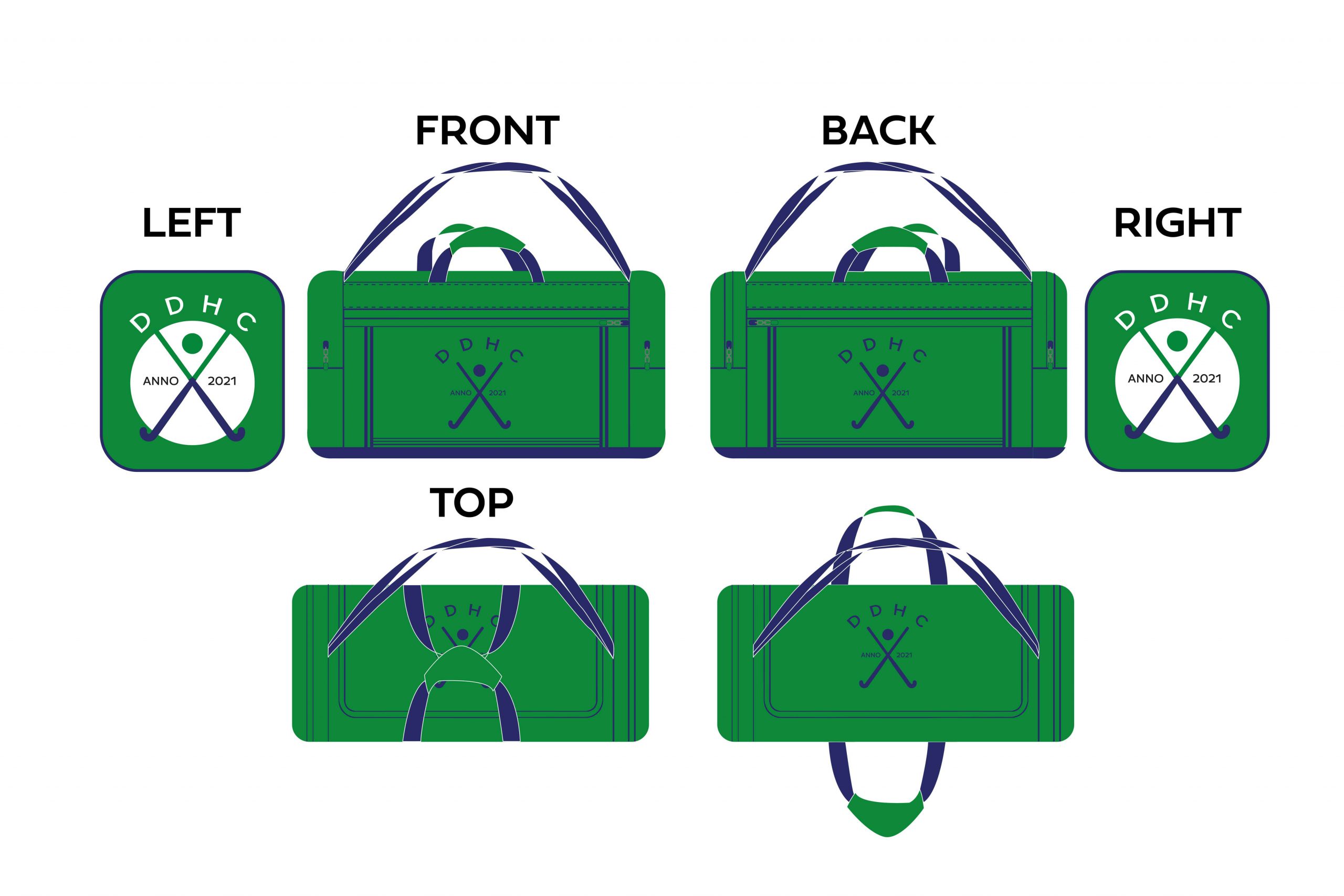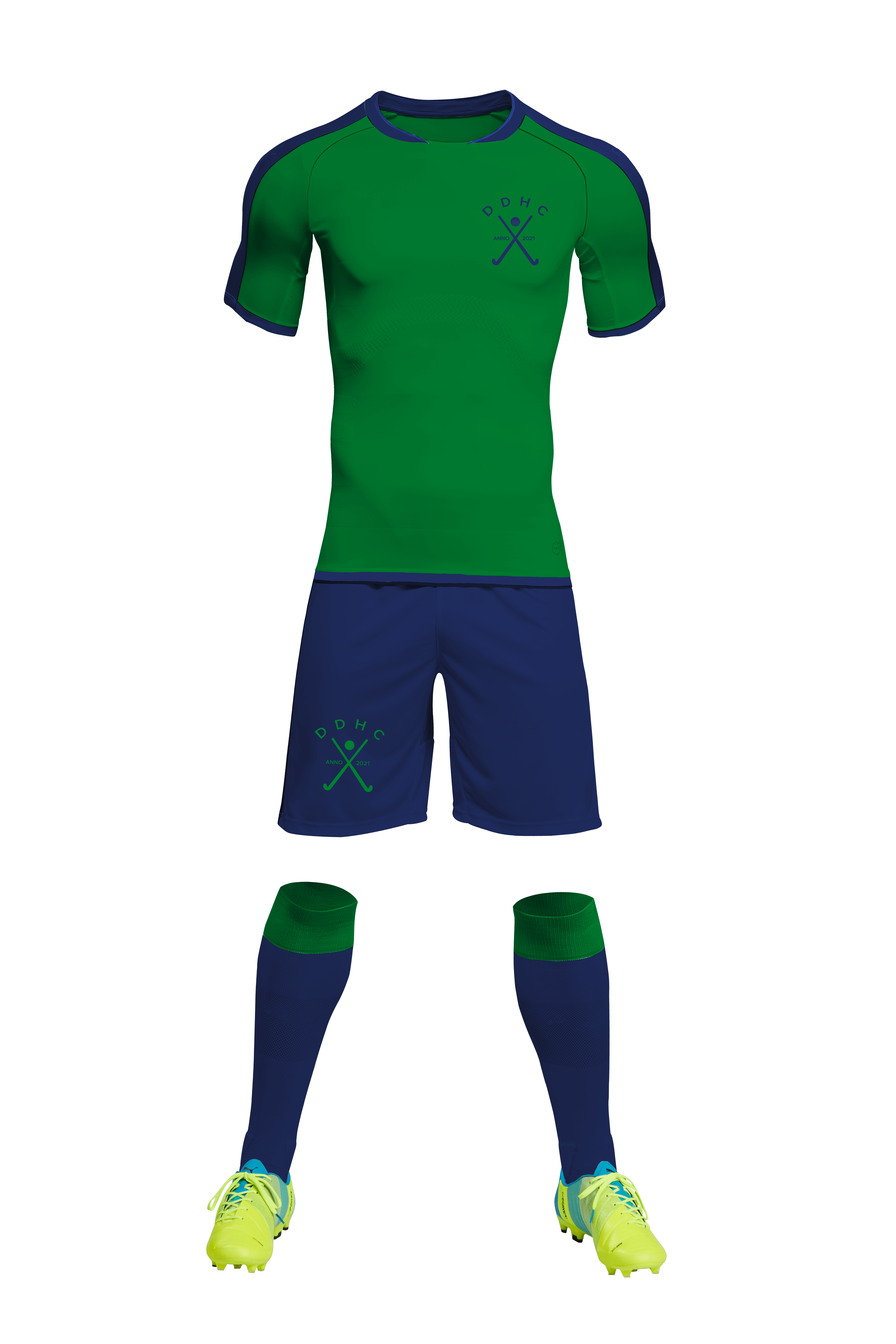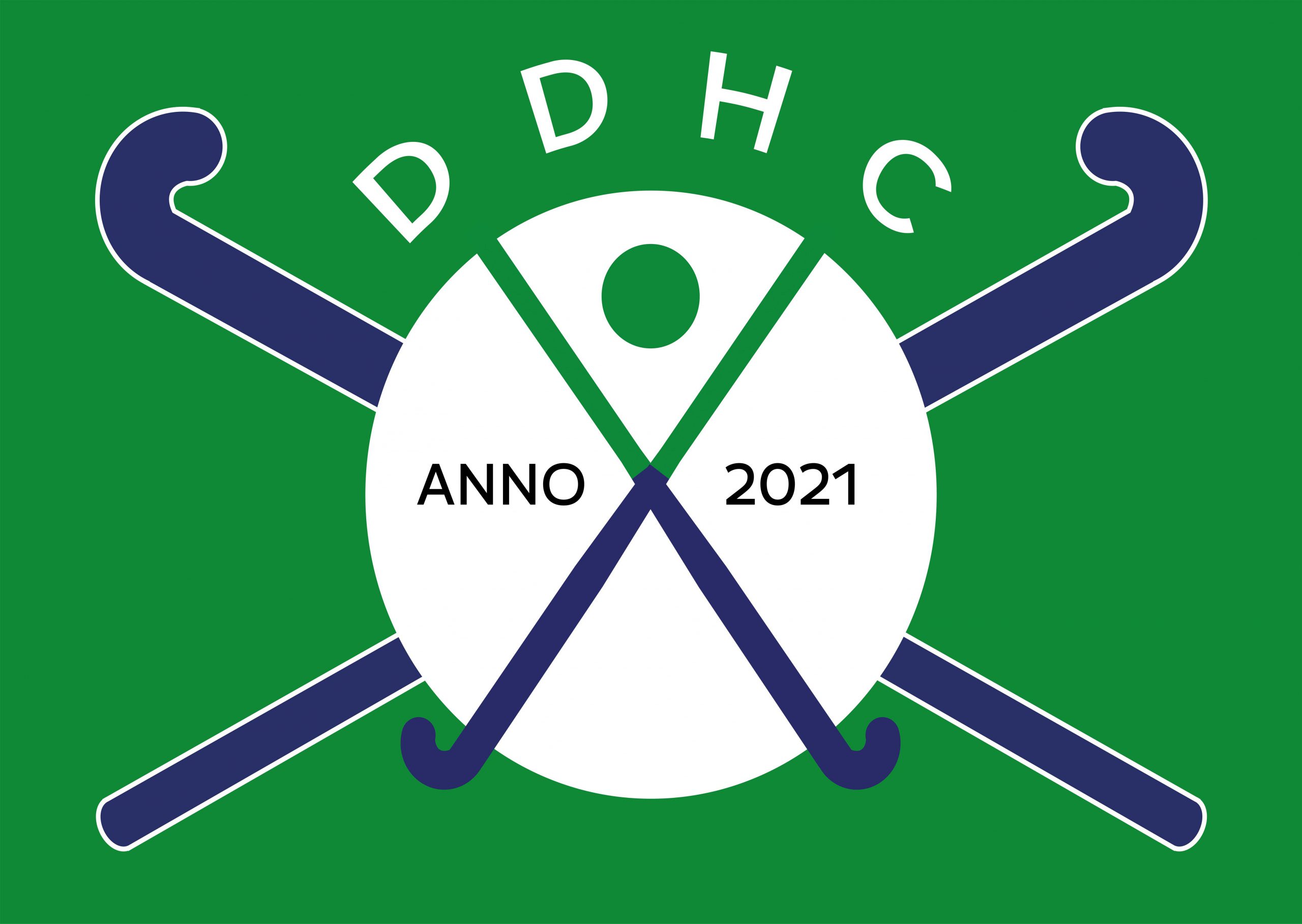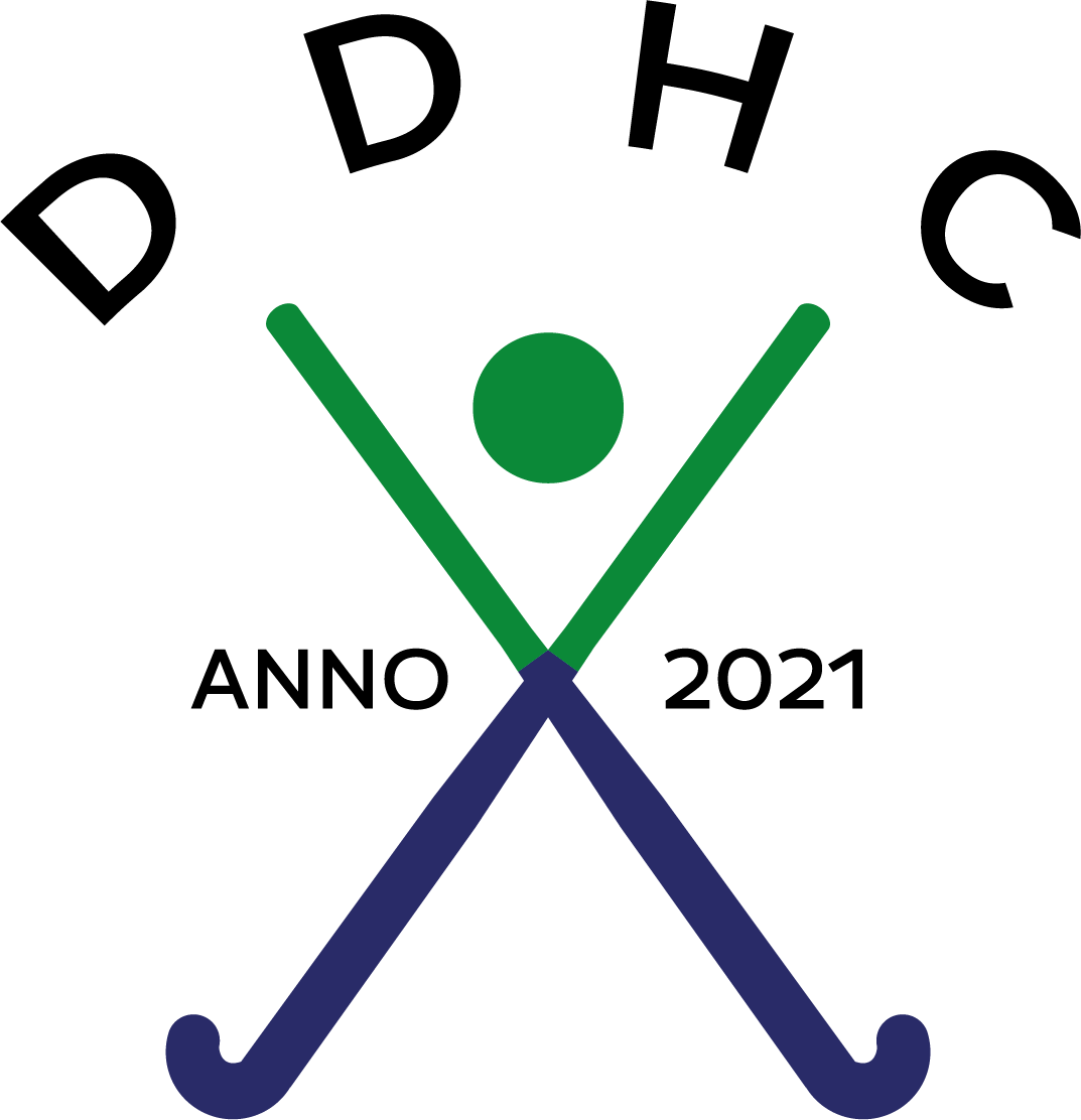 Voor het logo heb ik de oude kleuren van DDHC behouden, donker groen en donker blauw. Het logo bestaat uit 2 hockeysticks schuin op elkaar met een hockey puck erboven. Als je goed kijkt kan je in het logo een poppetje zien. Het donker blauwe is dan de broek en het groene het shirt. Dit heb ik ook door vertaald naar het club tenue.